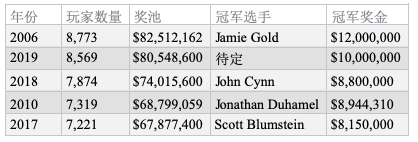 2019 WSOP主赛报名截止前玩家数据表: