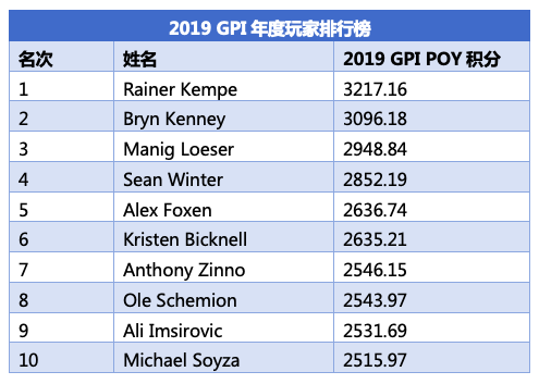 一个月前,位于年度玩家排行榜第一的选手是Bryn Kenney,但随着WSOP的开赛,榜单数据开始发生变化,如今榜首人物易主,排在第一的玩家是Rainer Kempe。