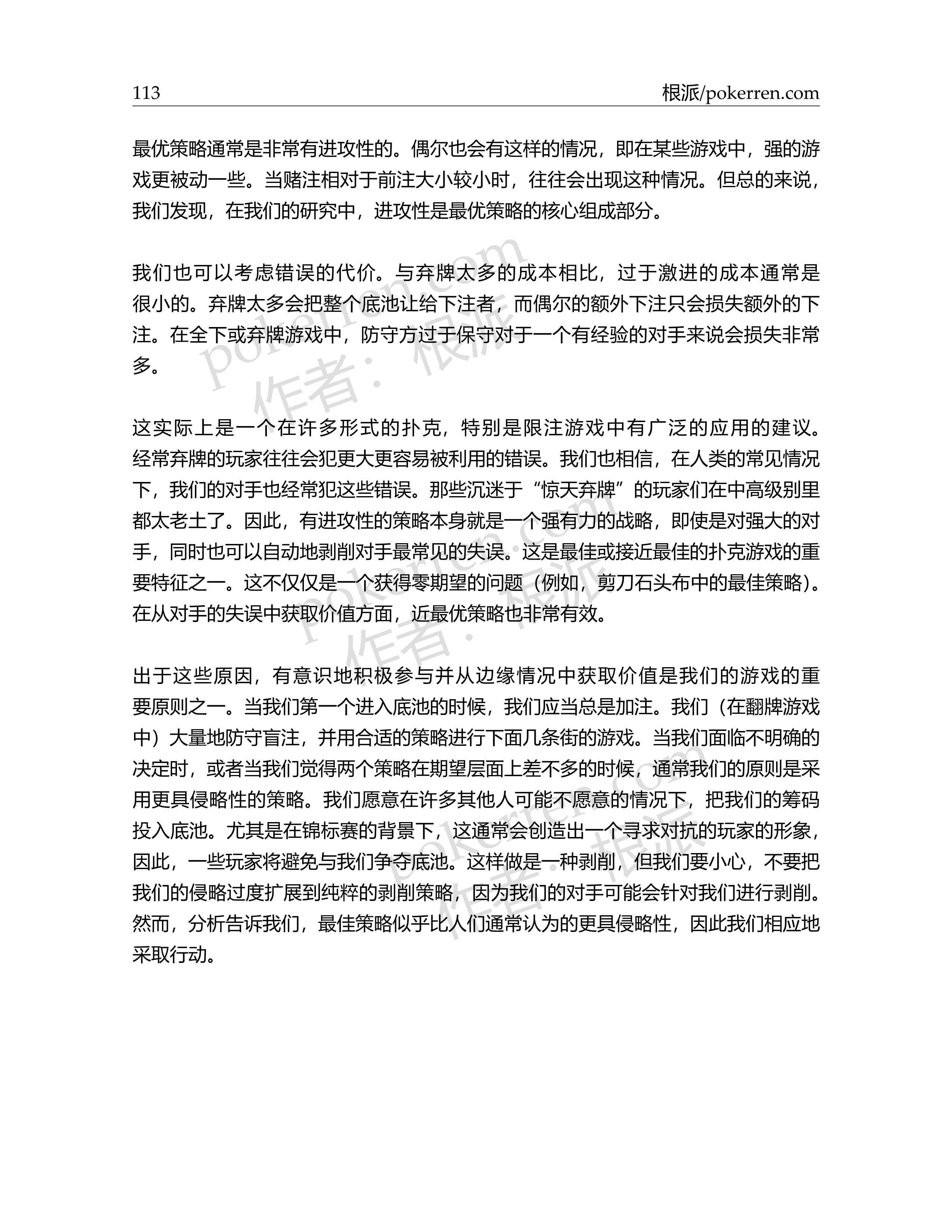 在这本书中,我们考虑了各种各样的情况。我们研究了许多不同的游戏模型,并试图从它们的解决方案中提炼出明显的经验教训。我们研究了大量真实的扑克例子,甚至解决了一个常见的真实扑克情况(第12章中的全下或弃牌游戏,本站文章《扑克中的数学61-63》)。这本书中的很多理论和很多材料,即使是那些对博弈论和其他数学分支有一些经验的人也可能不熟悉。