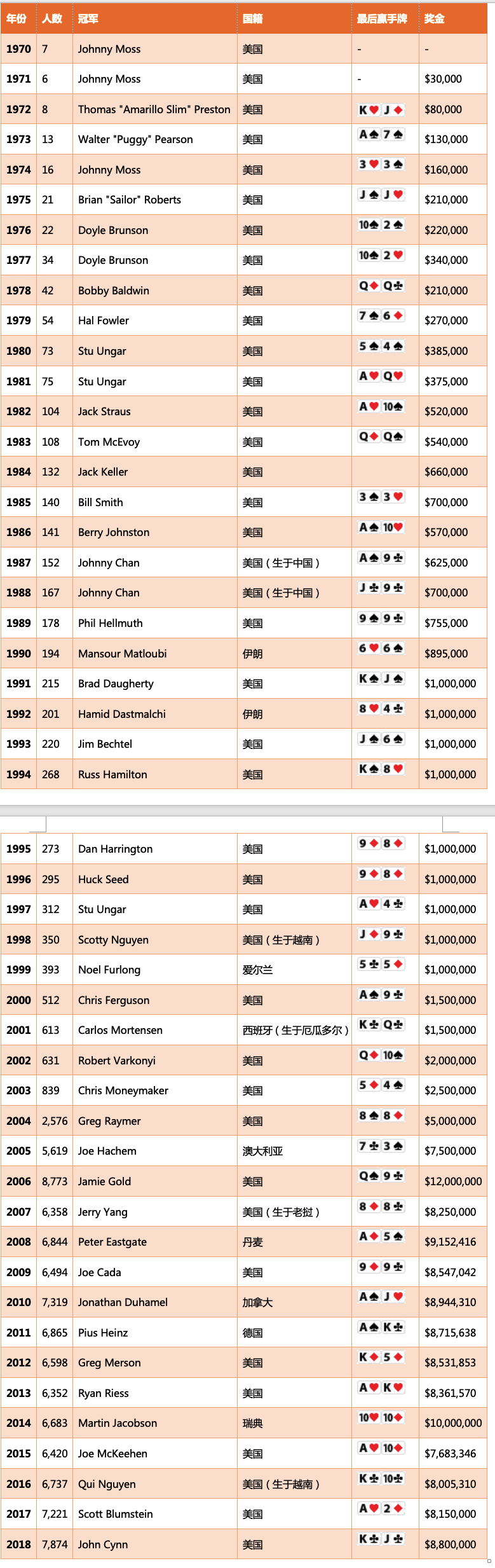 1972年,无限德扑慢慢登上扑克舞台,WSOP终极赛事也慢慢变成了如今的$10,000买入主赛。