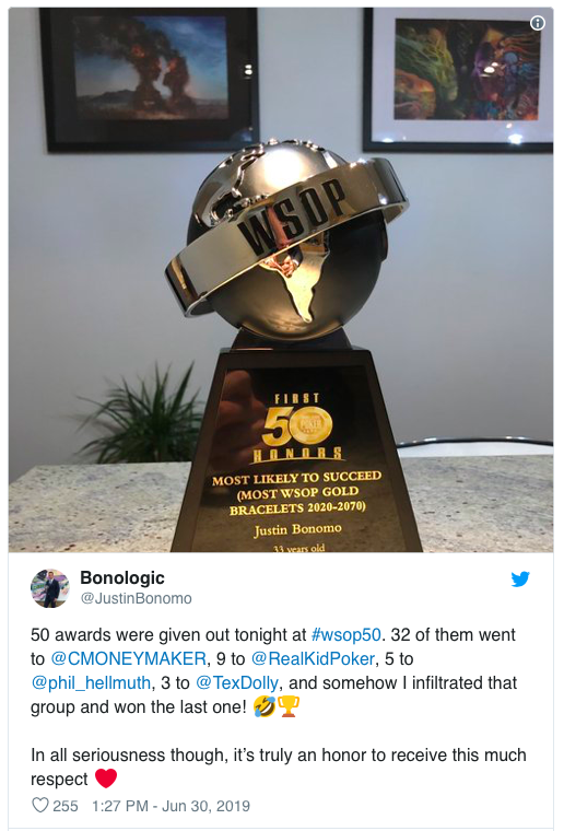 作为2019世界扑克锦标赛50华诞庆典的一部分,主办方举办了一次由粉丝投票来决定谁是最终获奖者的荣誉颁奖礼。