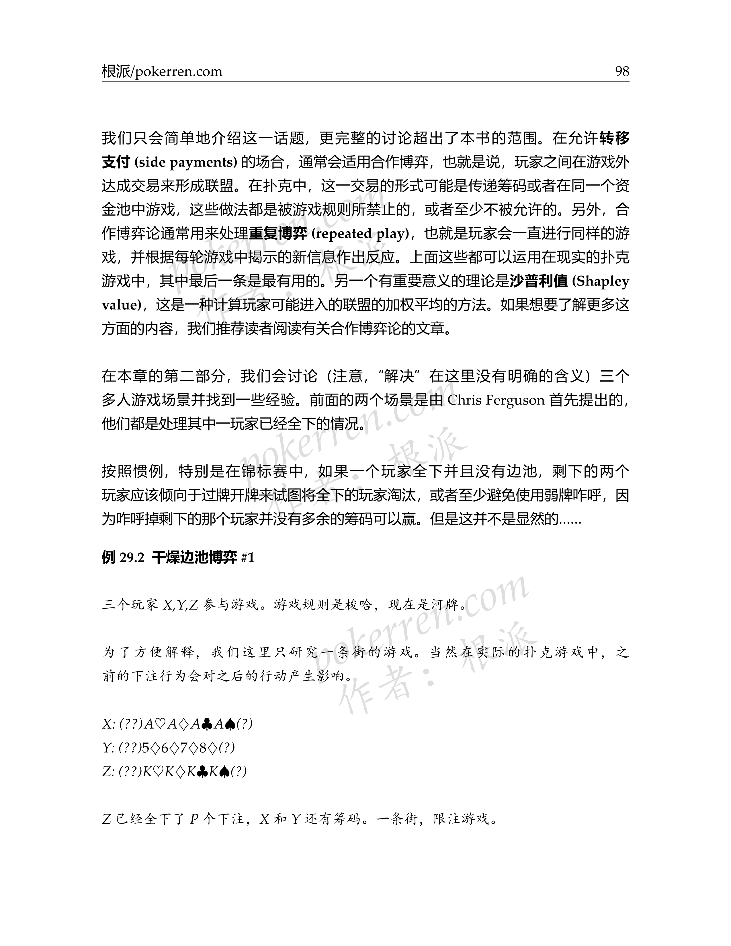 可能有其他类型的伙牌,事实上,有时候可能在同一手牌中有多个可能的伙牌联盟。在这种情况下,不同的参与者应该选择哪个伙牌联盟并不总是通过简单的期望分析就可以决定的。