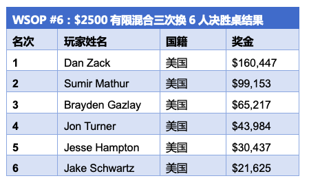 Dan Zack摘得WSOP $2,500有限混合三次换桂冠,将个人首条金手链收入囊中