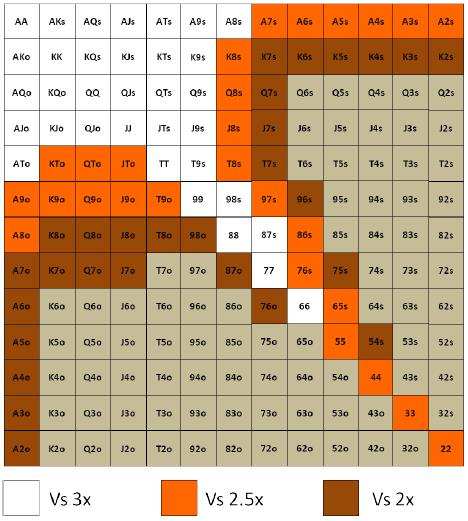 我们来看看面对来自按钮位置的各种尺度率先加注我们可以用怎样的范围防守: