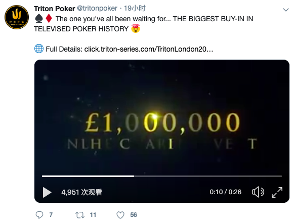 传奇超高额豪客系列赛(Triton Super High Roller Series)将在今年8月举办史无前例的超高额买入赛事,官方已经通过推特宣布将举办扑克锦标赛史上最高买入的比赛。