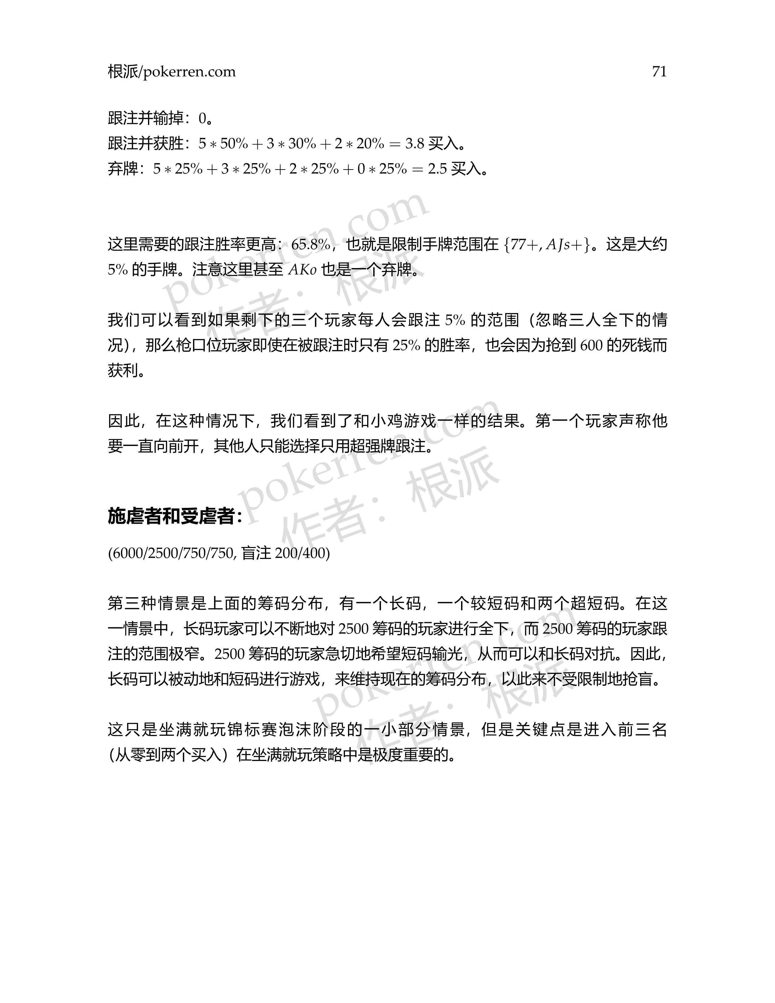 另外一个在线上流行,在实体赌场中也经常见到的游戏形式是单桌坐满就玩锦标赛。一般来说,这样的锦标赛是无限注的(当然其他的游戏形式也是存在的,只是没有那么流行)。比赛只有一个桌子,奖金可能是第一名50%,第二名30%,第三名20%。
