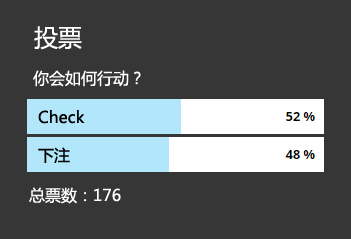 如果我们打算下注,应该是一个极小的下注。但Check是总体而言更好的玩法。