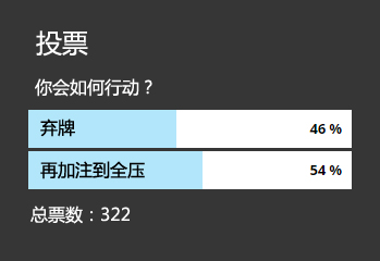 总之,在这种场合弃牌和再加注到全压都是可行的,具体取决于你对对手游戏风格的阅读。