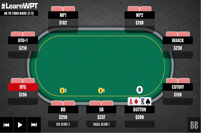 牌局分析:AK,翻牌圈拿到顶对,转牌圈如何行动?