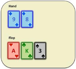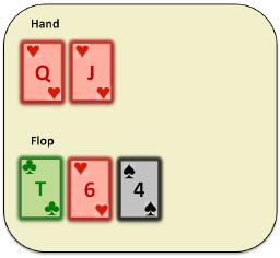 翻牌圈:Hero翻牌圈拿到了一个带后门同花听牌的底对。是时候评估我们的持续下注因素了: