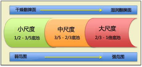 当你采用平衡的下注尺度时,考虑哪个尺度最适合你持续下注范围中的大部分牌总是明智的。