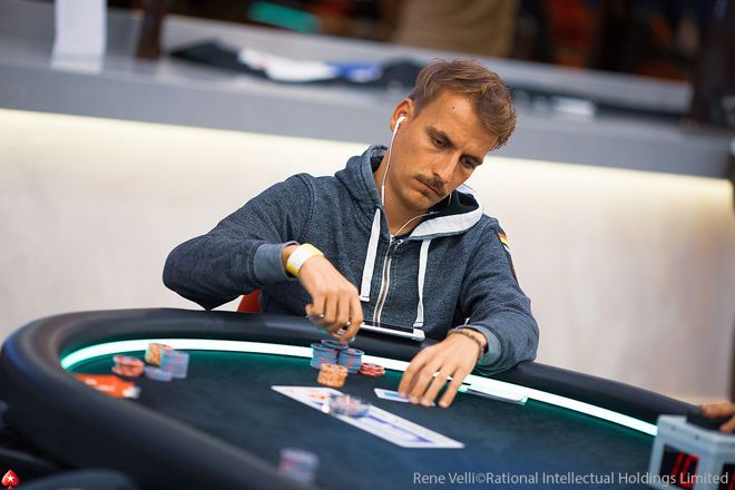 似乎没一会儿Carrel就淘汰了下一位选手。Ole Schemion(第7名 - €33,270)拿着A-J全押,Carrel以底牌6-6跟注。翻牌圈的6直接让Schemion的出局成定局。剩余六名玩家进入下一轮的比赛。