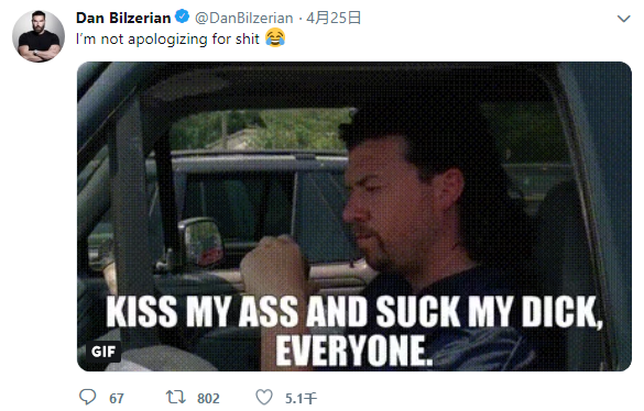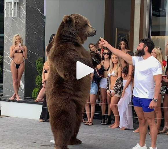 大意:尊敬的Dan Bilzerian,你的这种行为是在欺负动物。我方认为这位自封的名人在Instagram上的这段视频是在虐待野生动物,他让一头棕熊在他宾客面前表演。PETA已经向当局反应。