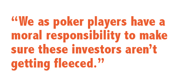 只要扑克锦标赛存在,就会有玩家寻找投资人为自己的买入额投资。当投资人无利可图时,他们就会对赛事份额投资失去兴趣。因此,扑克玩家在考虑找人投资时也要有最基本的道德标准。要学会对自己和投资人负责人,不要只看眼前利益,否则今后就再也没有人投资锦标赛买入了。不管大家的立场是什么,总的来说高加价在某种程度上是有利于扑克赛事圈发展的。