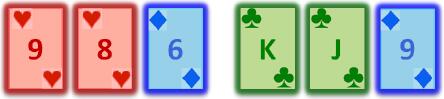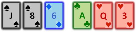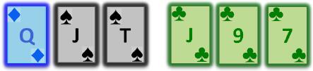 第一个翻牌面为许多翻前范围提供了更多顺子听牌和同花听牌可能性。第二个翻牌面提供了更多构成强对子方式,且存在一些卡顺听牌和同花听牌。