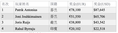 Antonius早已是芬兰最成功的锦标赛的牌手,职业线下锦标赛累积奖金接近1200万美元。