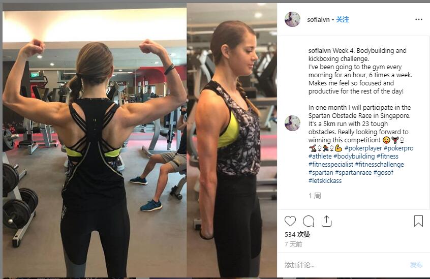 “我计划在2020年开始个人的健身品牌。我会制作一些训练视频,帮助那些健身的朋友们。除了打牌,健身是我最大的激情,我喜欢训练,”她说。“周末我打现金局,今年主要注意力就是做一家健身网站。9月我可能会登印度尼西亚龙目岛的林贾尼山,秋天的时候参加一场健身比赛。”