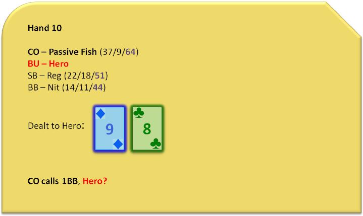 当我们确定不可能做隔离加注时,Hero要做另一个选择:是随后跛入还是弃牌。
