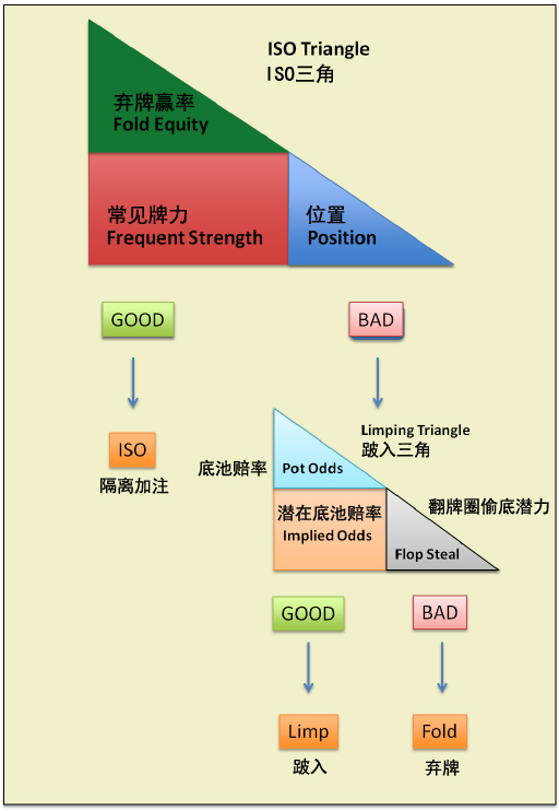 因此,当我们评估ISO三角,考虑我们的位置时,我们不仅关心我们的翻前位置,而且我们知道处在有利位置将在整个牌局过程中赋予我们一种优势,使我们在每个后续回合得到更多+EV。这就是好位置或坏位置可能左右我们决定的含义。
