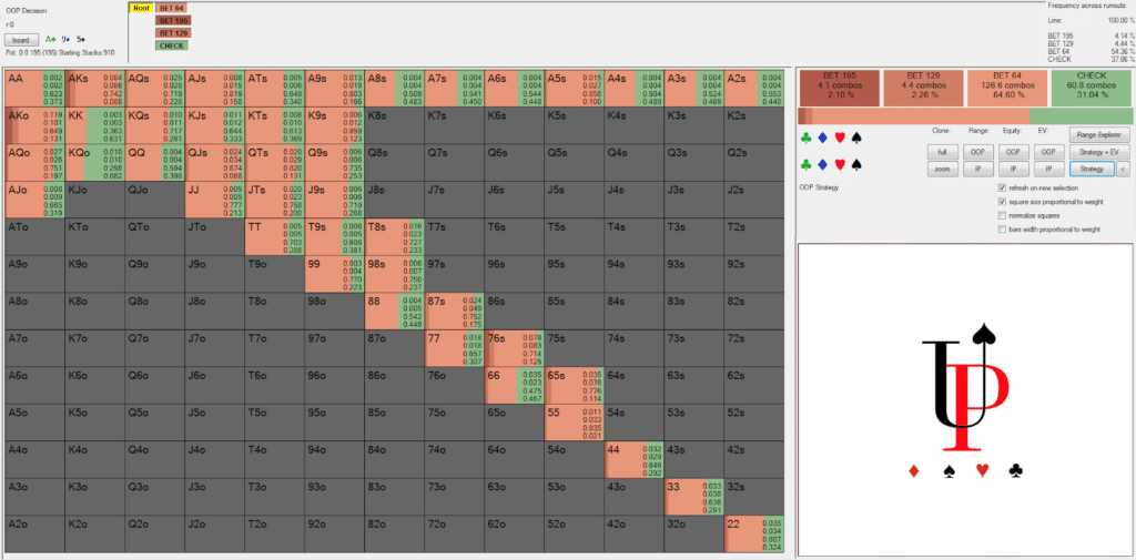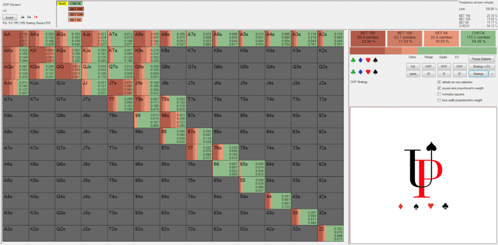 为了弄清楚为何PIOSolver在这里玩得这么激进,我们只需要问自己第一个问题——谁具有胜率优势?