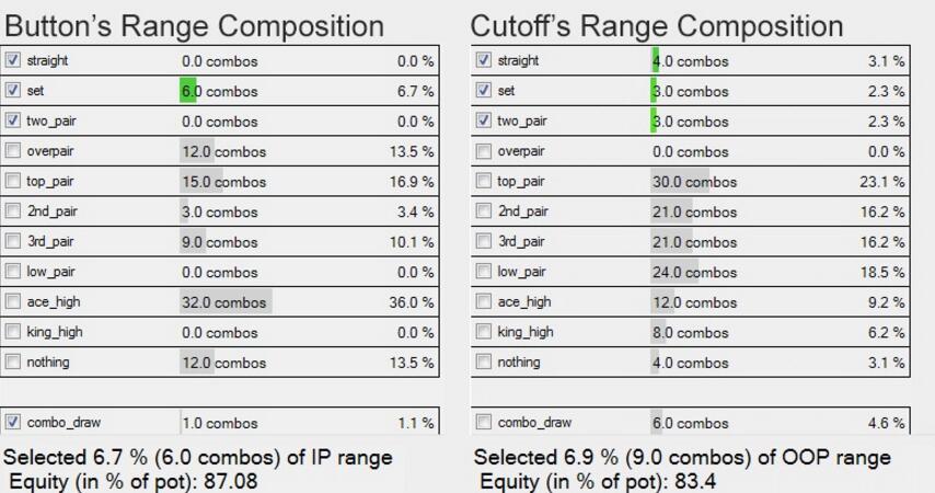 为了看出谁的范围具有更多超强牌组合,我们现在必须比较两位牌手的范围组成。