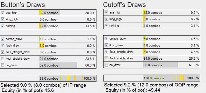 我们在这里再次看到一个平局,两个牌手范围中都有约占9%的听牌。