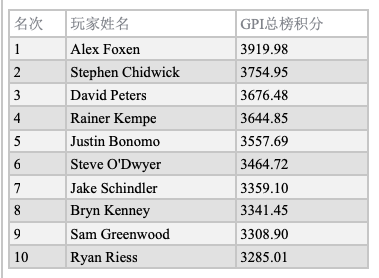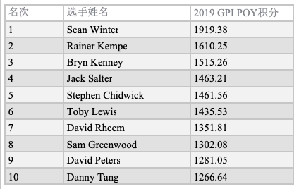 GPI:Sean Winter领跑POY排名;Foxen仍位居总榜第一
