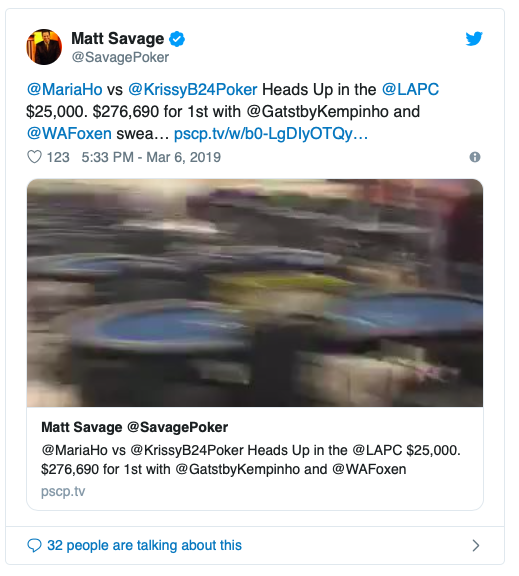 世界扑克巡回赛执行总监Matt Savage还为此专门发了一条推特。