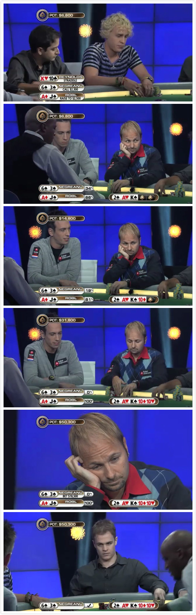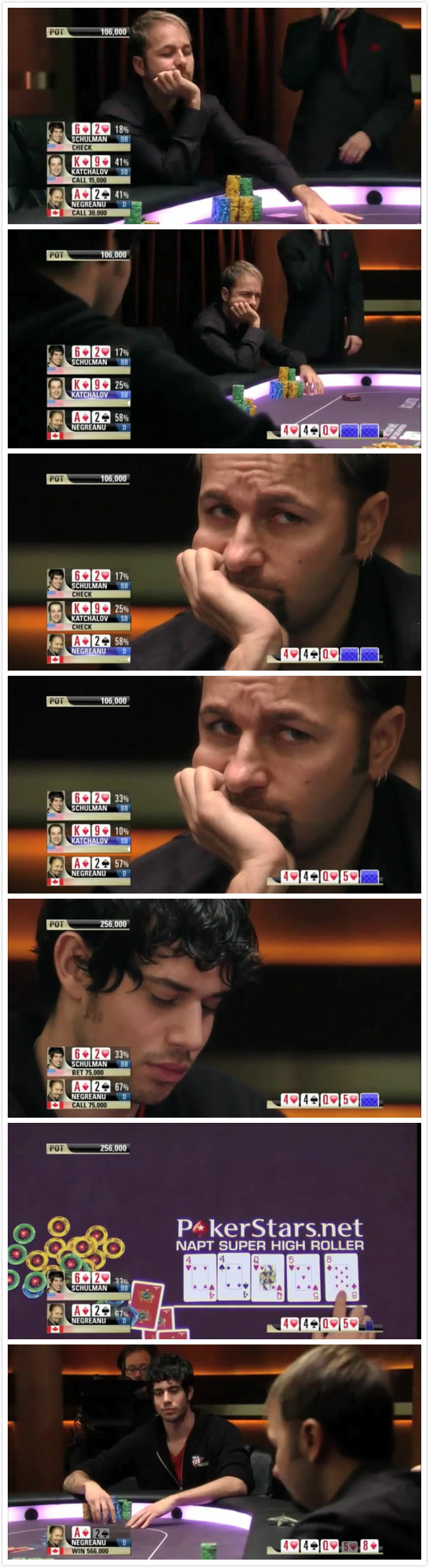 以下是丹尼爾的5大精彩牌局:
