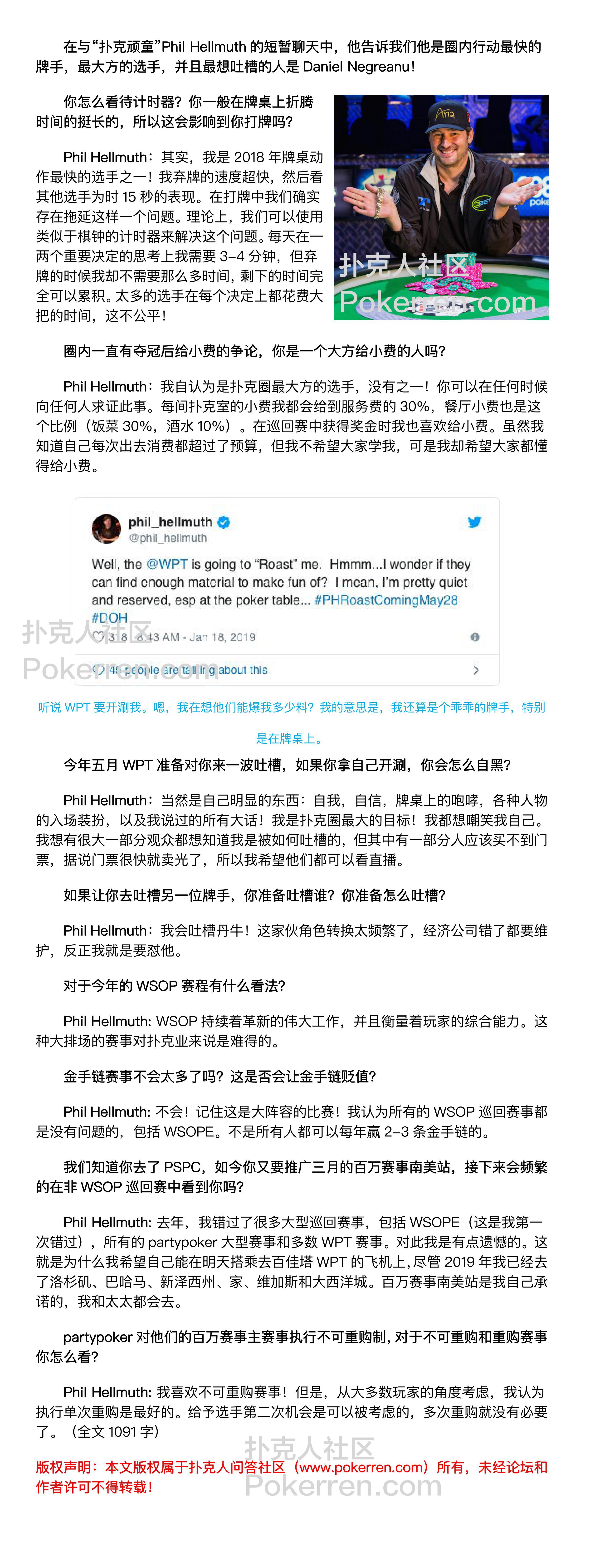 Phil Hellmuth:我是圈内行动最快和给小费最大方的选手