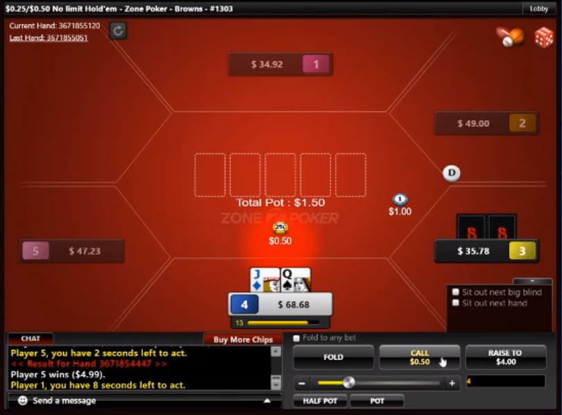 50NL Zone on Bovada. $47.25 effective stacks.