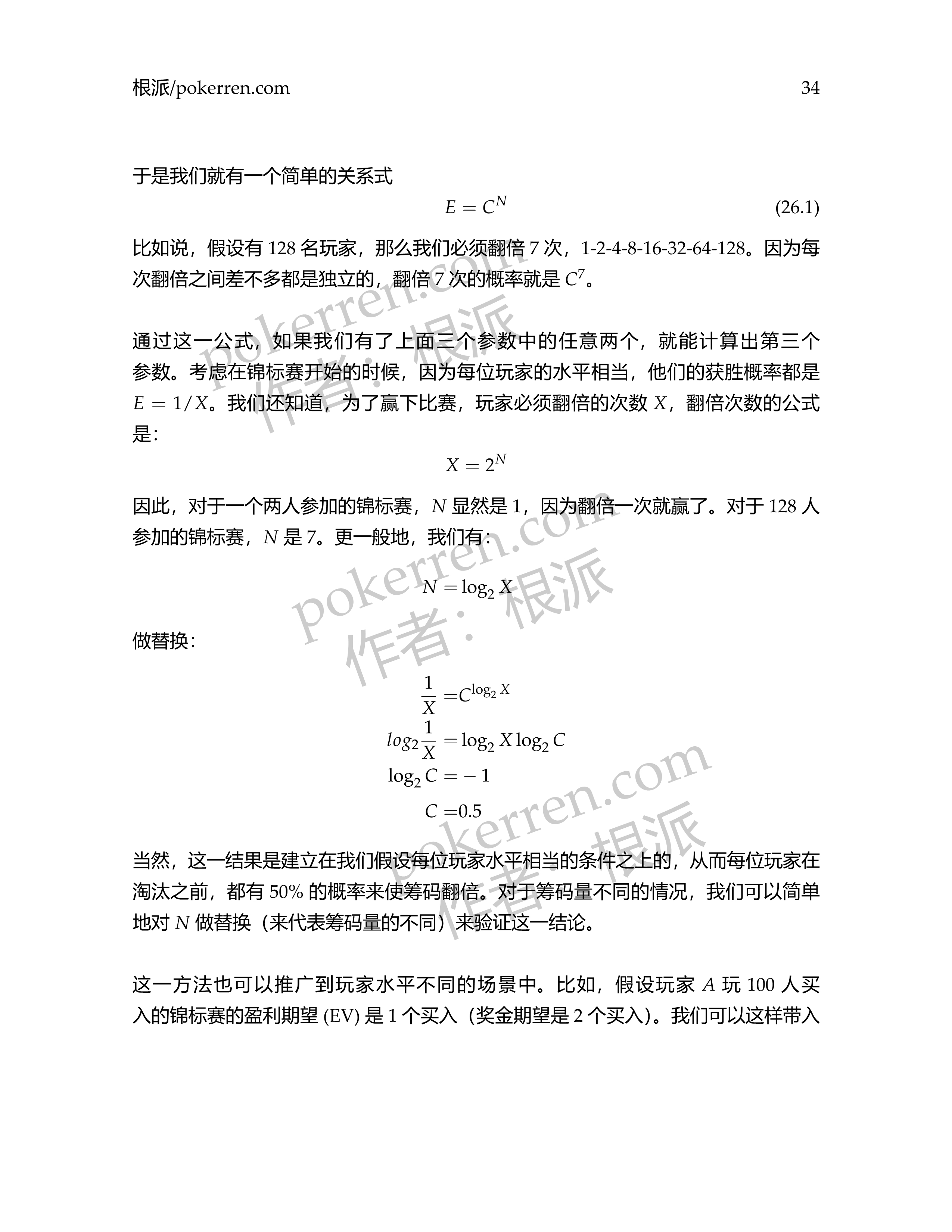 在锦标赛中,许多玩家会(几乎一定是错误地)因为相信他们会在后期得到更多的收益而放弃中前期更大的收益。但如果这是对的,他们在场上应该有很大的技术优势,而经验告诉我们这并不成立。但是技术水平对决策仍然是有影响的,我们将寻求量化这的影响的方法,并用它来指导我们在桌上的行动。