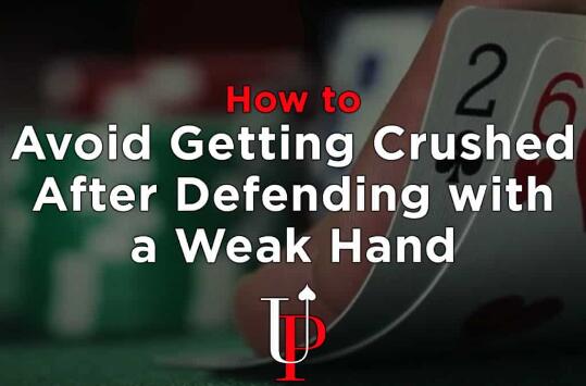 当你用弱牌防守时,不要觉得每次你的牌和公共牌有所联系就必须check-call。你应该分别考虑每一个局面,并做出最好的决定,而这往往意味着弃牌。