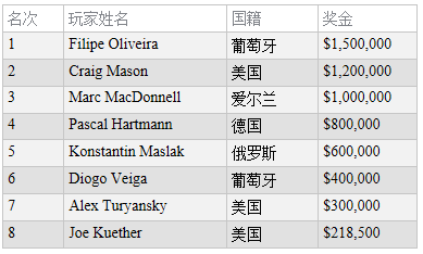 在最后一手牌中,Oliveira以底牌A-9击败Mason的K-9从而收获比赛最终的胜利,获得奖金150万美元。