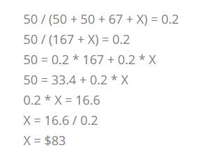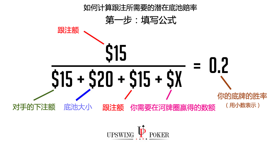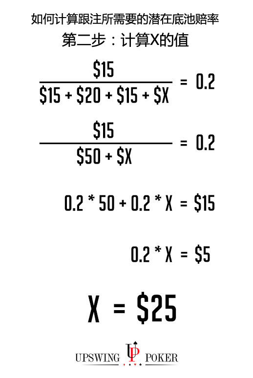 你可能注意到,这和底池赔率的计算公式极其相似。仅有的差异是分母中增加了一个“X“,以及你的底牌的胜率在等式的右边。