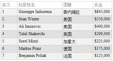 partypoker加勒比海扑克盛会$50,000超级豪客赛决胜桌结果: