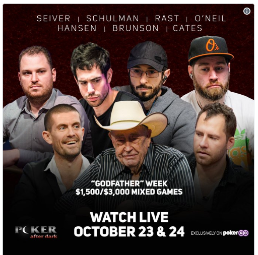 本周可被称为《深夜德州》(Poker After Dark,缩写PAD)的“扑克教父”周,一场$1,500/$3,000混合扑克赛将在10月23-24日举行,而这场赛事的重点嘉宾就是“扑克教父”Doyle Brunson。