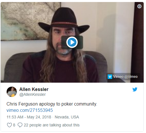 整个扑克圈有多喜欢Ivey就有多讨厌Chris ‘Jesus’ Ferguson,不知道为何在全速扑克事件多年后Ferguson突然在今年选择了公开道歉,而且还是通过视频的形式。他的行为真的让人不知如何去评论,作为全速扑克管理层人员,赔付工作正式结束之后选择首次公开道歉的意义何在?