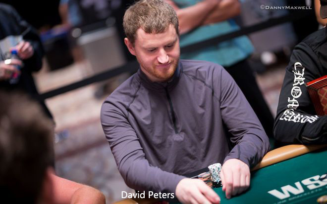 盲注8000/16000,前注16000,David Peters的筹码量从最初的500万缩水至约220万。翻前,Adrian mateos加注到4万,Peters在大盲位置跟注。翻牌是6♠ 9♣ 10♠,Peters过牌。