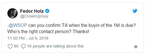 Fedor Holz不满WSOP提前公布百万一滴水报名名单
