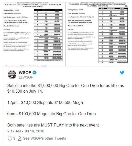 Twitter大意:$1,000,000大型一滴水豪客赛事$10,300卫星赛将在7月14日开赛。