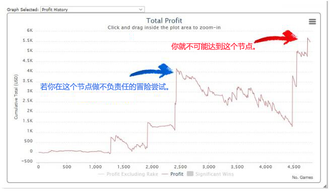 切记,扑克是一种时起时落的高波动游戏。为了在低谷中生存下来,你需要在高峰时约束自己的行动。