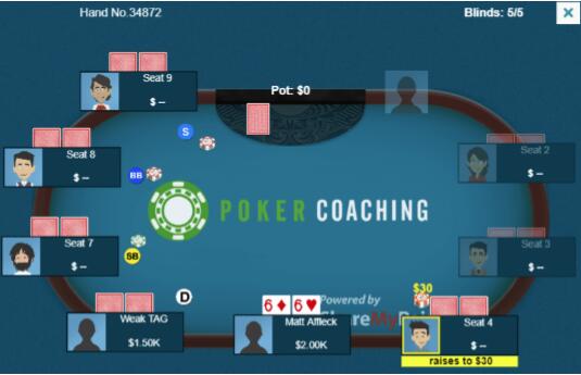 1.翻前,前面玩家弃牌,劫位玩家率先加注到30美元。你在CO位置发到了6♥ 6♦。你会怎么做?