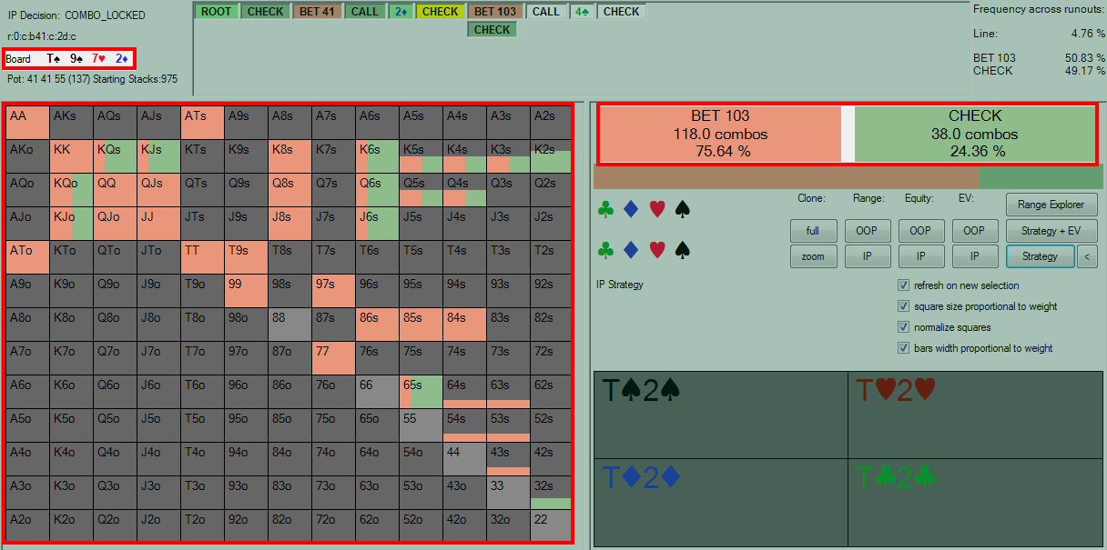 我们看看解决者建议的转牌圈策略: