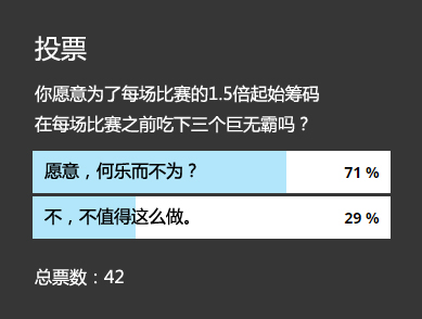 著名扑克媒体Poker588就这个提议发起了一个投票,目前为止近七成读者表示愿意做这种交换: