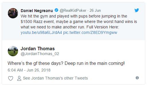 Jordan Thomas推特大意:这些天你的女朋友去哪里了?希望你能打入赛事深筹码环节!