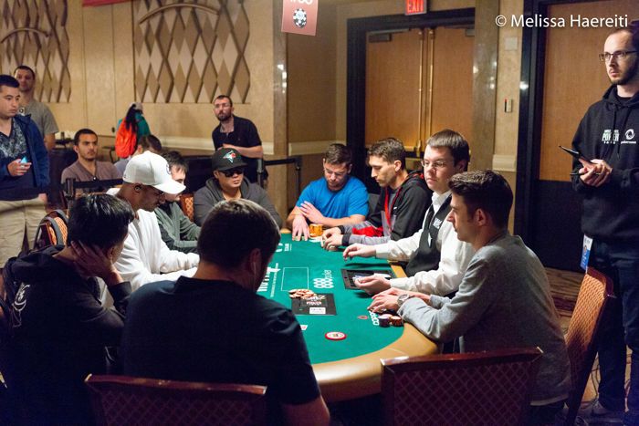 午休过后开局没多久第一位选手就出局了,但比赛很快就进入了8强环节。首先,Jimmy Chen持底牌4-4被对手击败,以第10名选手身份出局。随后在决胜桌前几手牌中,Rittie Chuaprasert全押了所有筹码并输牌,以第9名出局。