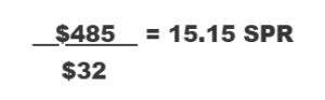 底池大小现在是32美元(不考虑抽水),剩余有效筹码是485美元。因此,在本例中SPR为: