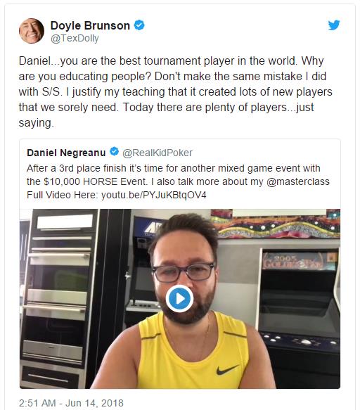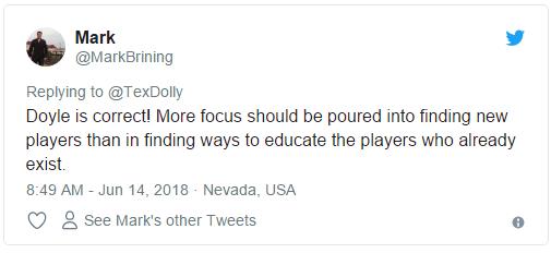推特大意:Doyle是正确的!更多的注意力应该放在寻找新的牌手身上而非寻找新的方式来教育现有的牌手。
