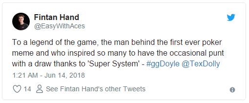 推特大意:对于这样一位牌坛传奇,值得大家借鉴的地方太多了,而很多牌手的成就的确归功于《超级系统》。